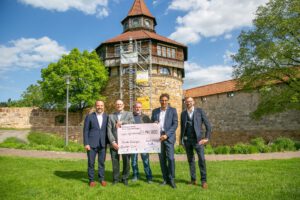 Für OB Matthias Klopfer ist die Turmsanierung „ein tolles Beispiel für das, was man mit einem Gemeinschaftsprojekt erreichen kann“. Dass sich der Turm50 Jahre nach seiner letzten Sanierung wieder in neuem Glanz präsentieren wird und damit auch beim Stadtjubiläum 2027 eine Rolle spielen  könnte, mache das Projekt noch charmanter. Wie gute der Dicke Turm angenommen wird, unterstrich Ingo Rust: Allein die Burgstube verzeichne schon jetzt jährlich 60 bis 70 Vermietungen. „Und ich bin sicher, dass man auch den Turmsaal lange im Voraus reservieren muss, weil er so stark gefragt sein wird“, prophezeite Rust.